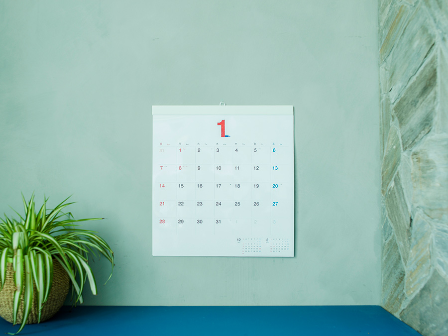 - 切り取り式(ミシン目で切り取って使う月を前面にします)
