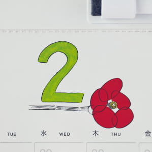 書いては消せる便利さで、 家庭で、職場で、選ばれ続けています。 月の数字は、画家の山口一郎さん!