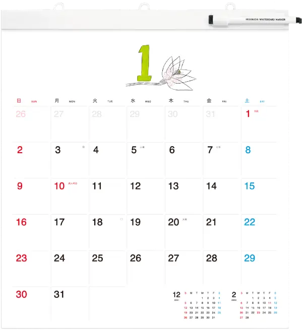 ひとりぐらしのお部屋や、受験生など個人の予定管理にはミディアム。
