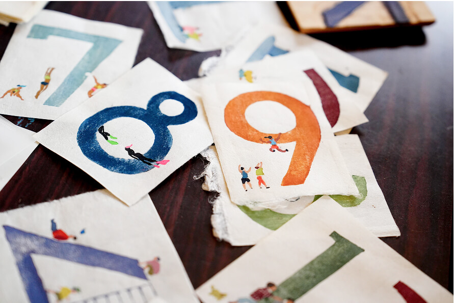 今回は版画で、月の数字を表現していただきました。