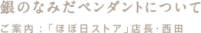 ![]() お申し込みいただく際のご注意点から デメリットの部分、お手入れ方法などを説明しますので、 ぜひいちど、目をとおしておいてくださいね。 ![]() 「カシミアのTシャツ」「銀のなみだペンダント」 「スポーティなネクタイ」、3つとも「数量限定販売」、 出荷時期は、3月末となります! 販売数量が決まっていますので、売り切れてしまったら、 そのアイテムについては、販売完了となります。 ただし、「カシミアのTシャツ」については、 3月中に出荷が完了する〈第1次販売〉の終了後、 その翌日から、4月に出荷される〈第2次販売〉を行います。 いずれにしましても、 もし、お気に入りの商品がありましたら、 いつのまにか完売してしまった、なんてことがないよう、 お早めのお申し込みを、おすすめいたします! ![]() 「カシミアのTシャツ」は 「XS、SS、S、M、L、LL」の6サイズ。 お好みのサイズを細かくお選びいただけます。 ただし、お気をつけいただいきたいのが 「男女あわせての6サイズ」ということ。 つまり、ふだん「女性用のMサイズ」を着ているかたが、 秋のセンチメンタルテリトリーでも 「M」をお申し込みいただくと、 「大きめのサイズ」になってしまうのです‥‥。 そんなことがないよう、 以下のページで、よく確認しておいてくださいね! 【カシミアのTシャツのサイズについて】 なお、サイズ表の数値を見てもわかりにくい場合は、 お気に入りのシャツの大きさを計って、 サイズ表と比べていただければ、間違いないと思います。 ![]() これは、みなさんのパソコンのモニターによって、 表示される色味が、微妙に異なるためです。 そのため、お手もとに届いた商品が モニターでごらんになっていた色味の印象と 異なることが、あるかもしれません。 商品をお受け取りになって、ビックリ! なんてことのないよう、 ねんのため、お知らせしておきますね! みなさん、おひさしぶりですメェ。 カシミア研究家の、カシミール博士です。 「カシミアのTシャツ」には、 最高の品質といっていい素材をつかっています。 その品質を、できるだけ長くキープするために 気をつけていただきたいことが、いくつかあるんです。 さっそく、ご説明させていただきましょう! ![]() 「カシミアのTシャツ」は 内モンゴル(中国)産のカシミアを100%もちい、 現地の工場で、生産をおこないました。 財団法人毛製品検査協会という検査機関に 科学的な検査をお願いし、 「100%、本物のカシミアである」という証明書も、 いただいているんですメェ〜。 最高品質といっていい内モンゴルのカシミアを、 どうぞ安心して、お楽しみください! ![]() お洗濯には、クリーニングをご利用するのが、 もっとも簡単です。 信頼できるお店を選び、 「獣毛製品」であることをお伝えしたうえ、 必ず「石油系ドライクリーニング」を指定してください。 方法さえ守れば、 ご自宅でお洗濯していただくことも可能です。 くわしくは、わたしが精魂こめてしたためた、 「カシミール博士の手紙」をご覧くださいね。 糸井重里さんも、みたらしだんごをこぼしたりしたとき、 ご自宅で洗っているようですよ。 ![]() ニットの製品には、 「着こむうちに、伸びてくる」という特性があります。 これは、「カシミアのTシャツ」でも、おなじこと。 ですから、お届けのさいに 「ちょっと小さめかな」とお感じになられても、 着ていくうちに、じゃっかん、伸びてきます。 また、繊維の表面がこすられたりするうちに 毛の小さなもつれがからみあい、 しだいに大きくなって、毛玉になることも。 これもまた、ニット製品の性質上、 どうしても、多少はできてしまうものなんですメェ。 もし、毛玉を処理する場合は、 ボディを傷つけないよう、気をつけながら 小さなハサミで、ひとつひとつ取り除いてくださいね。 ![]() 「カシミアのTシャツ」を着ないときには、 必ず「たたんで」、タンスなどに保管してください。 ハンガーなどに吊るしておくと シャツじたいの重みで、伸びてしまうのです。 また、湿気も厳禁。こわいのは「カビ」です。 タンスなどに保管する場合は、 湿気がこもらないよう、「いちばん上」に置き、 防湿剤も、あわせてご使用ください。 また、「虫食い」をふせぐための防虫剤も、わすれずに。 ![]() シルバー素材の「よさ」を できるだけそのままお楽しみいただくため、 「銀のなみだペンダント」の表面には メッキがほどこされていません。 そのため、時間が経過するとともに やや、表面の光沢部分が曇ってきます。 すこしでも輝きをたもつために、 着用になられたあとには、 やわらかい布で、 やさしく「から拭き」することをおすすめします。 また、ひどく汚れてしまったら 貴金属専用の磨き布でお拭きください。 なお、保管するさいには 市販のシルバー製品の保管袋や 保護用シートなどをお使いいただくと、 なにもしない状態にくらべ シルバーの輝きを、より長く保つことができます。 入浴(とくに温泉