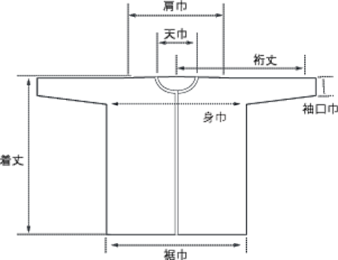 | 身丈 | 身巾 | 裄丈 | 裾巾 | 袖口巾 | 天巾 | 前下り | |