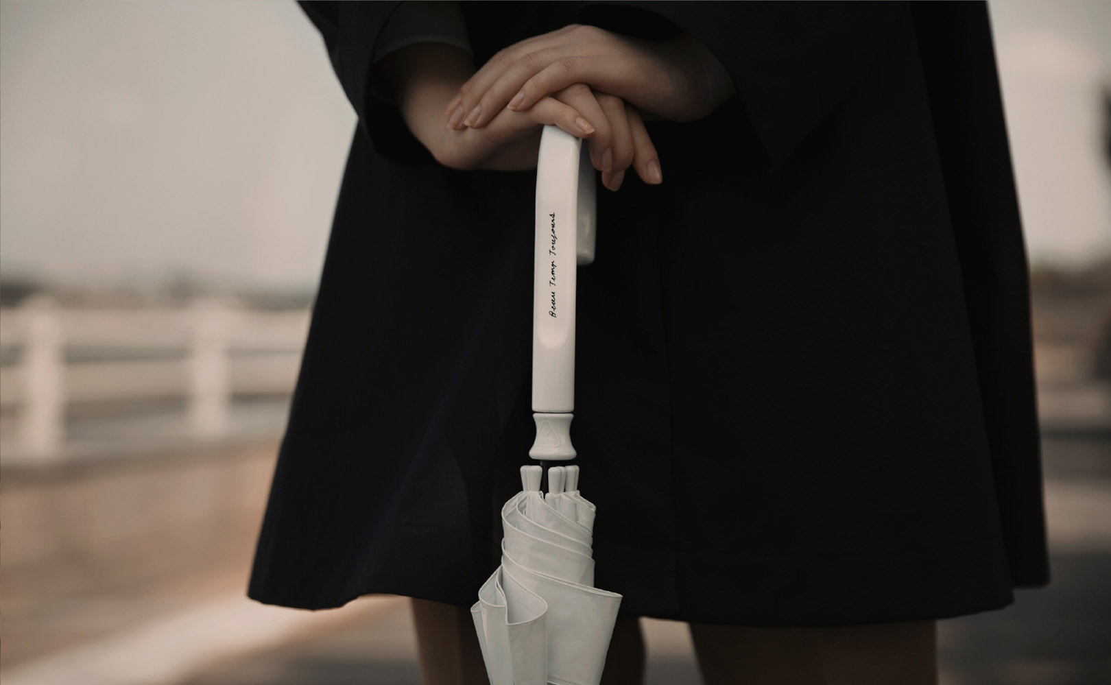 傘の持ち手にはBeau Temps Toujoursのロゴをプリント。