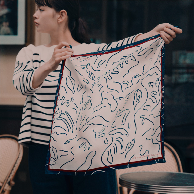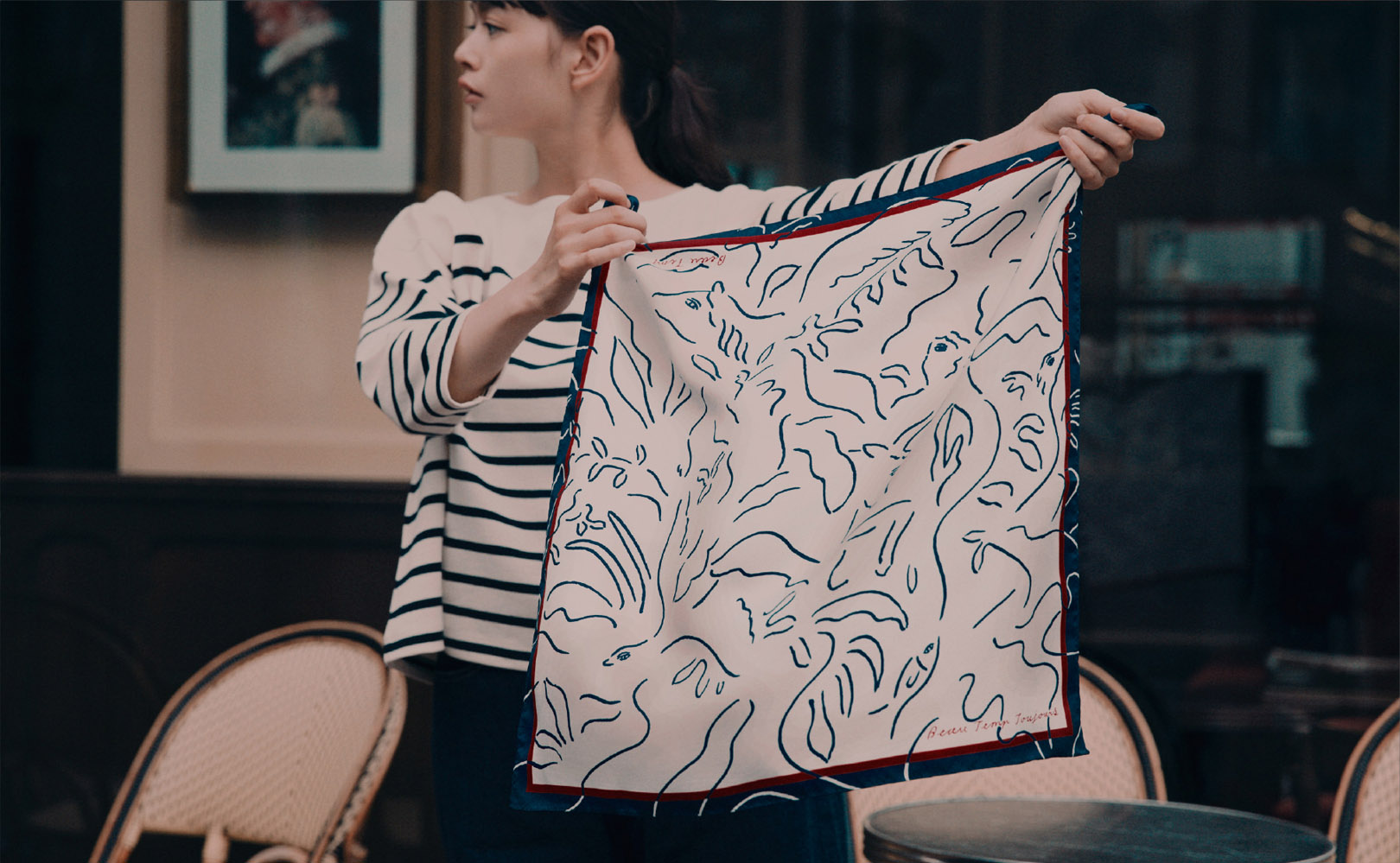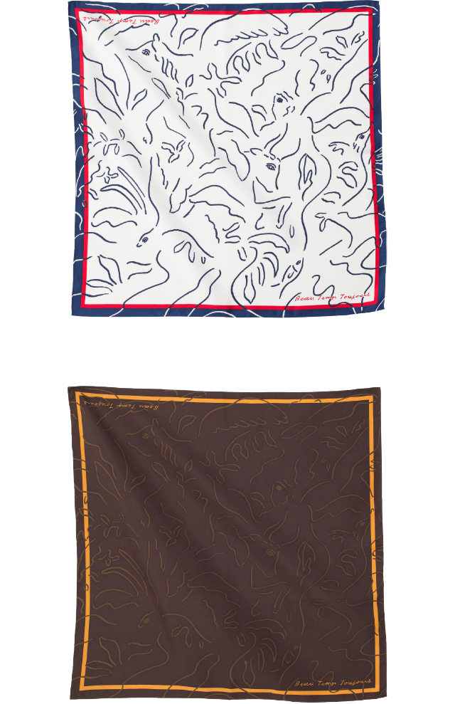 スカーフの端には、BEAU TEMPS TOUJOURSのロゴを
