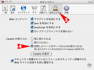 「訪問したページのサーバからのみ受け入れる」にチェック