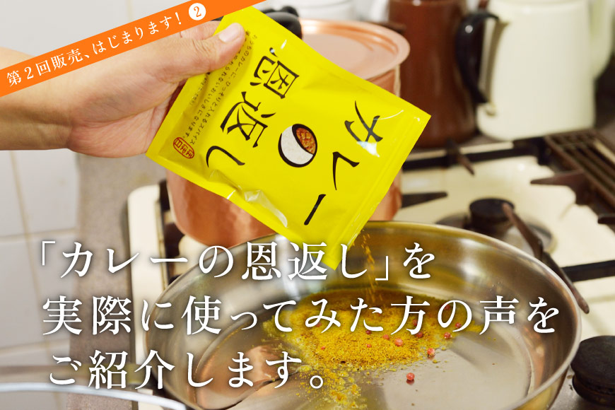 カレースパイス「カレーの恩返し」の再販売がはじまります。