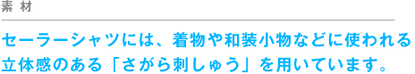 立体感のある「さがら刺しゅう」が用いられています。