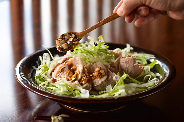 道歩さんの自家製ラー油をソースに使います。