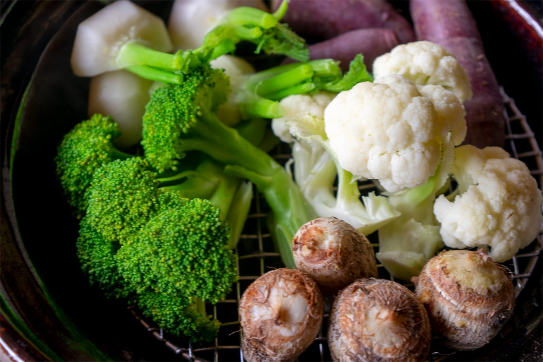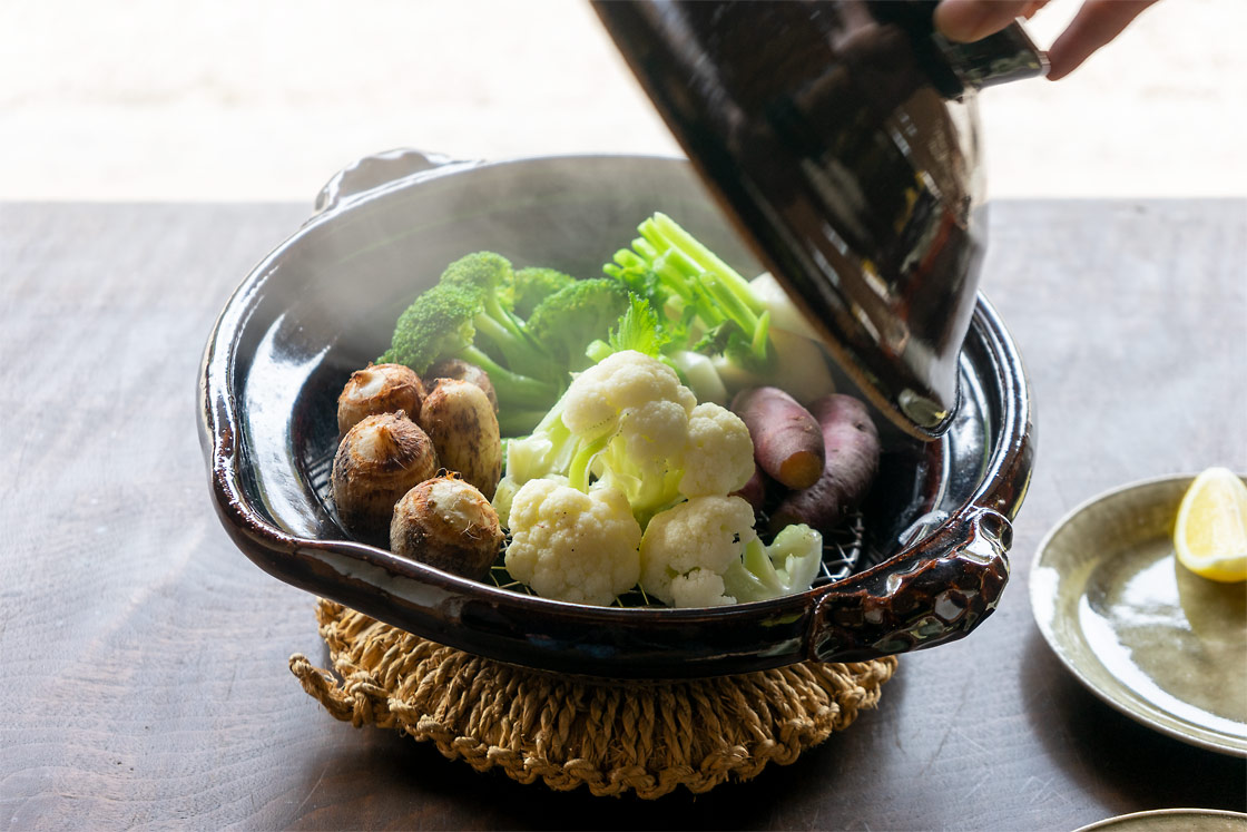 土鍋で蒸した野菜って、