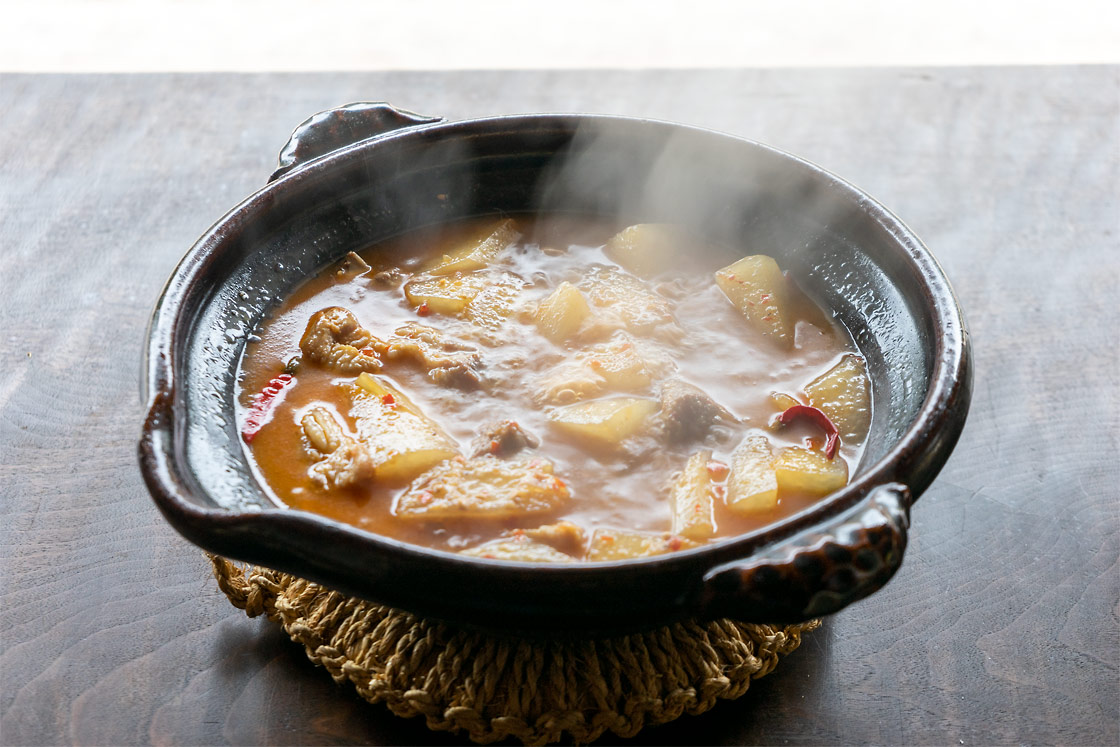 骨からほろりと崩れるほどやわらかく煮た