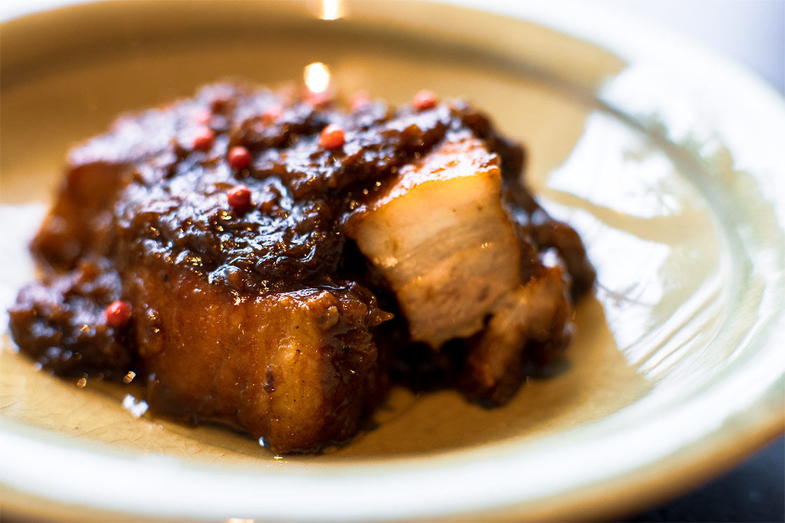 「バルサミコを使って、豚バラ肉を煮るんです。