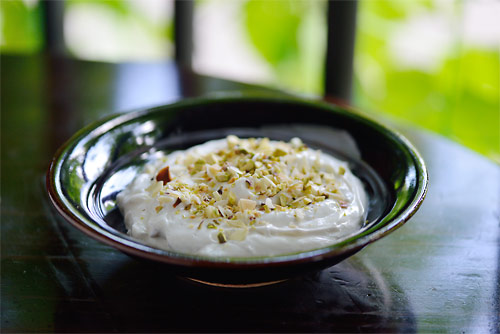 ヨーグルトを一晩、ガーゼにつつんで水分をとって、