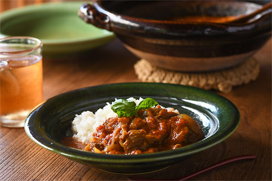 土楽の三女、柏木円さん作「トマトと牛すじのカレー」。