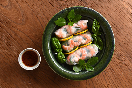 道歩さん作「ハーブたっぷり生春巻き」。