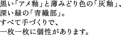 土楽の職人さんが一枚ずつ、手作業で釉薬をかけ、