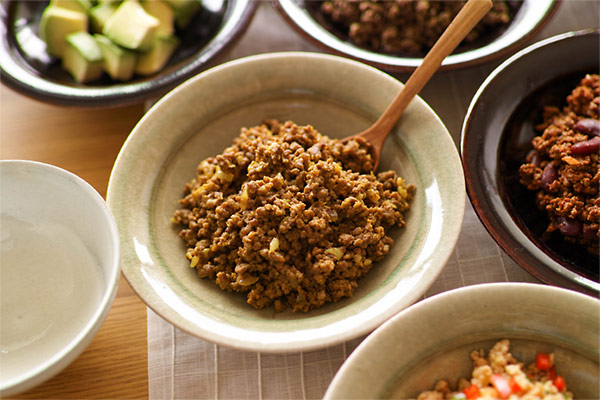 テックスメックス風のチリコンカンそぼろ。