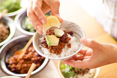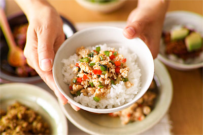 ごはんをかるくよそって、