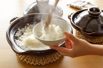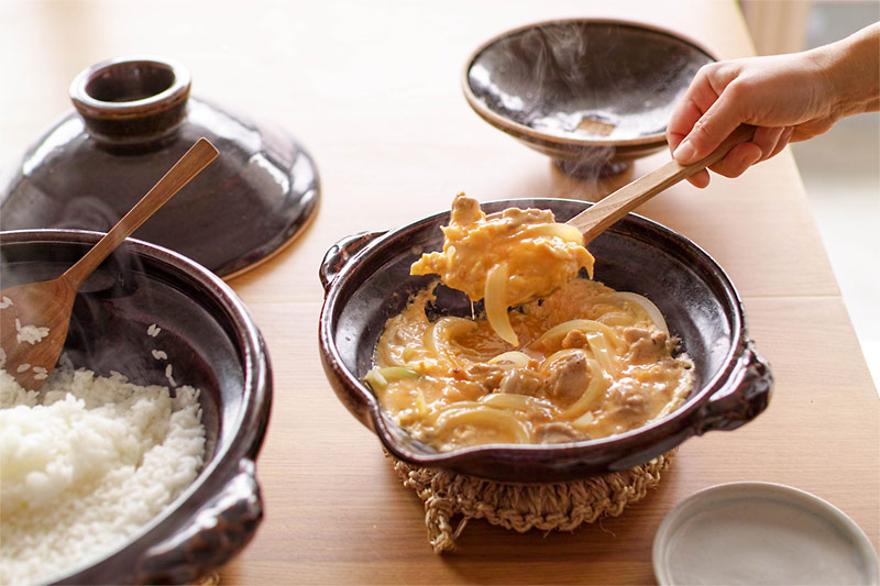 土鍋は、ごはんはベア1号、親子煮はベア2号を使いました。