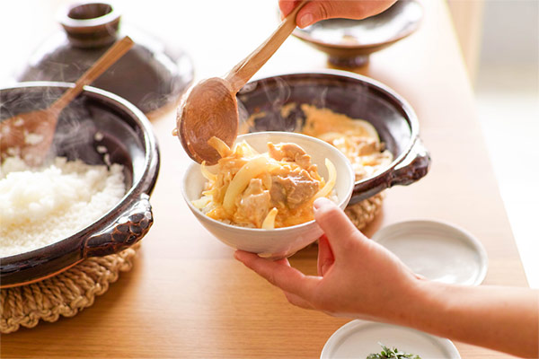 土鍋料理「鶏と玉ねぎの親子煮」。