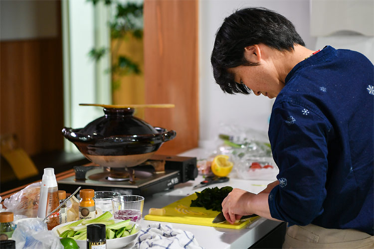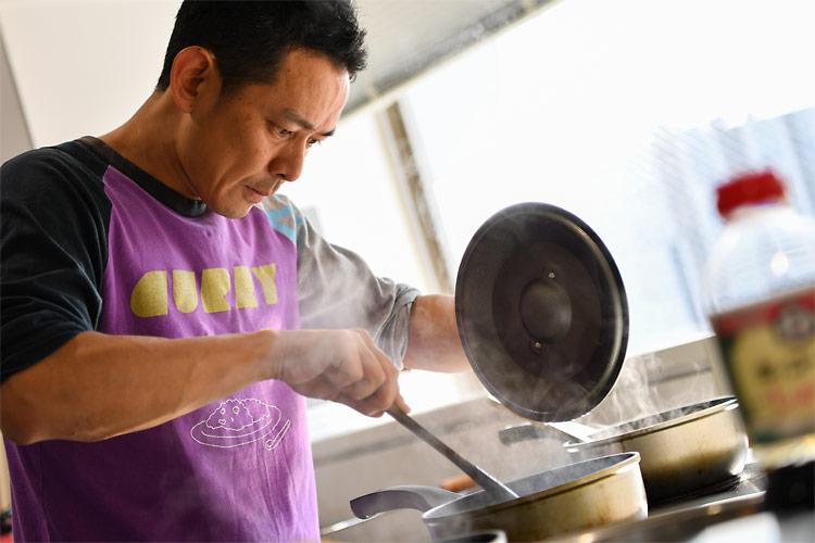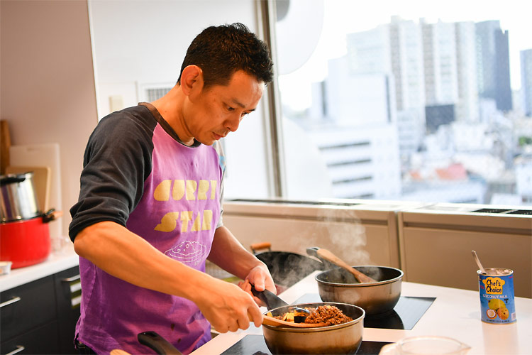 道歩さんは驚異の手早さで、カレーと副菜を8種。
