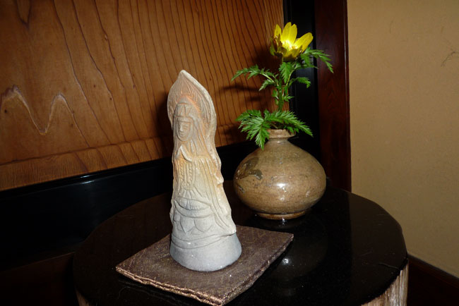 福森雅武さんが作った陶仏が出迎えてくれます。