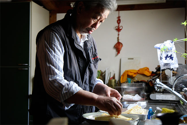裏山でとれた花山椒、たけのこ、そして山菜です。
