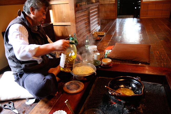 パスタにオリーブオイルをたらしてほぐし、