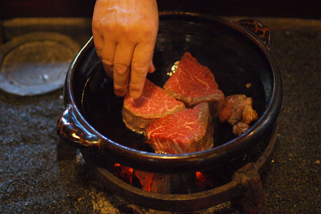 伊賀牛のヒレのかたまりをどんどん入れます。