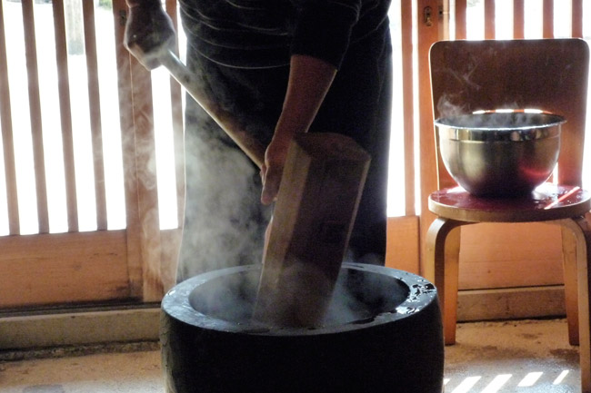 餅米をぎゅっぎゅっとつぶしながら