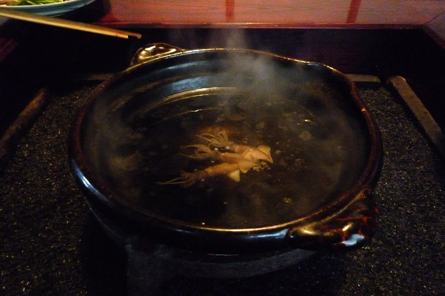 ホタルイカを、さっと、くぐらせます。