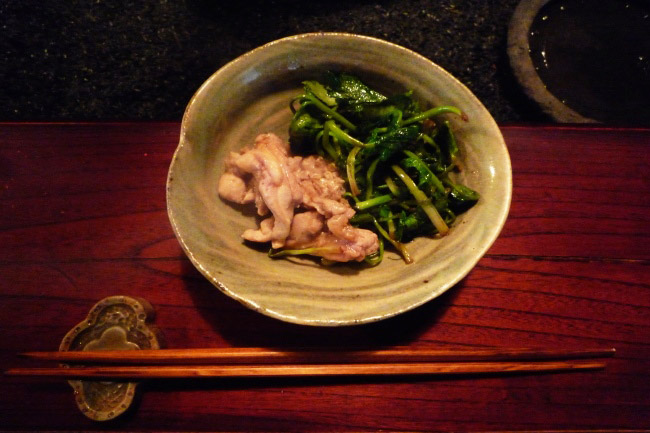 鶏肉に三つ葉、ふきのとう、甘草のそれぞれの香りが