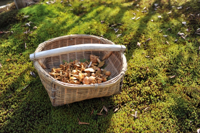 伊賀牛、きのこ、庭の野菜。