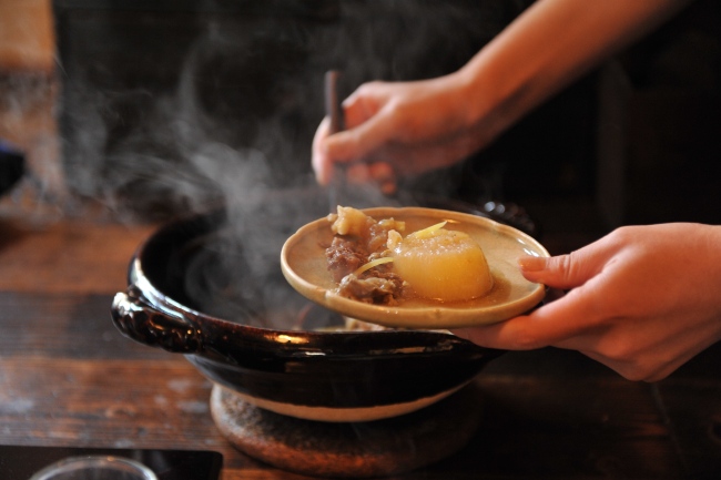 土鍋で炊くと、かたい牛すじも、ほろりとやわらかく!