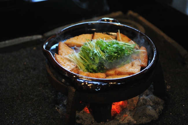 たっぷりの水菜を入れて、ひと煮立ち。