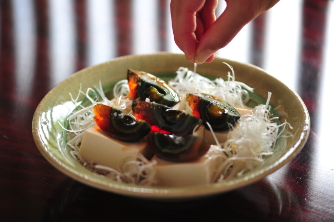 白髪ねぎたっぷりと、皮蛋豆腐。