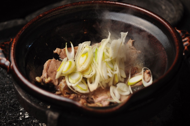 お肉に火が通ったら、ねぎをたっぷりのせて。