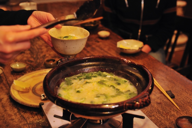 アラのいい出汁がでた土鍋に、ごはんを入れて、