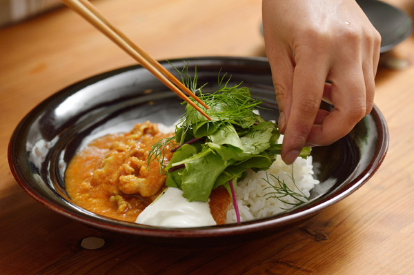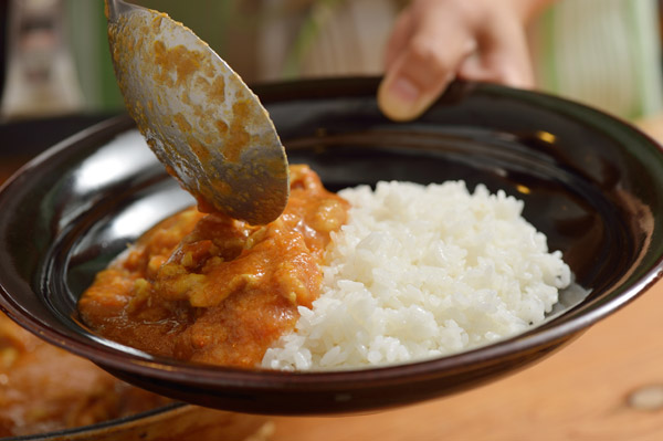 満留さん作のスープカレーは、7寸の「中(なか)のカレー皿」に。