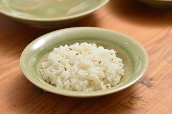 そしてごはん(これは、クミンをいっしょに炊いたごはんです)は、