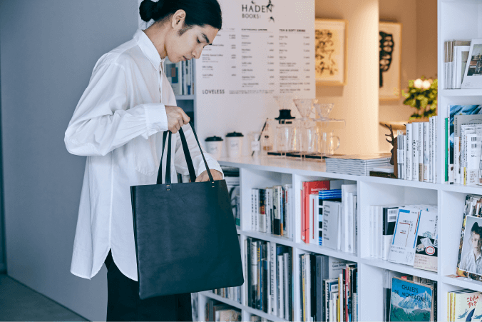 大橋さんがつくっていた帆布のトートバッグを