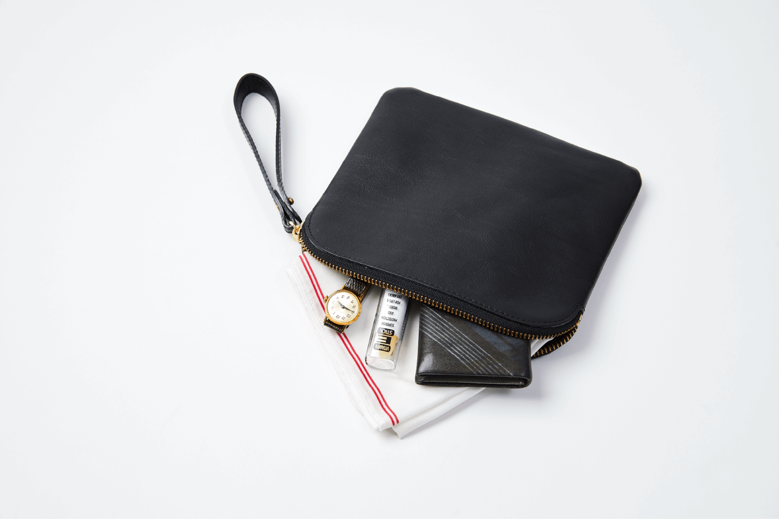 なかでも金属ファスナーのついたポーチは、