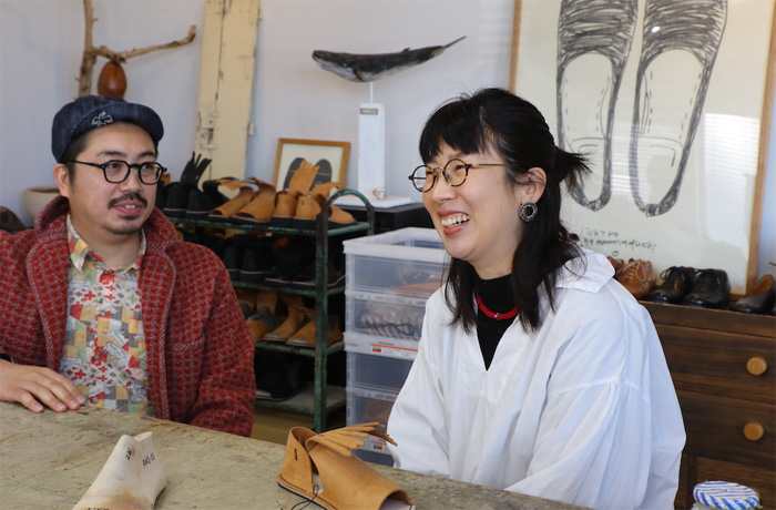 靴職人である櫻井義浩さん・富澤智晶さんらの手で、
