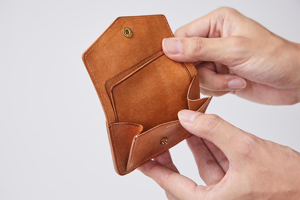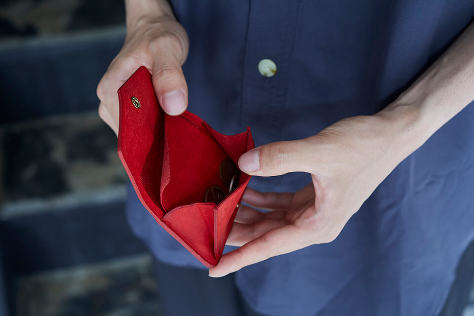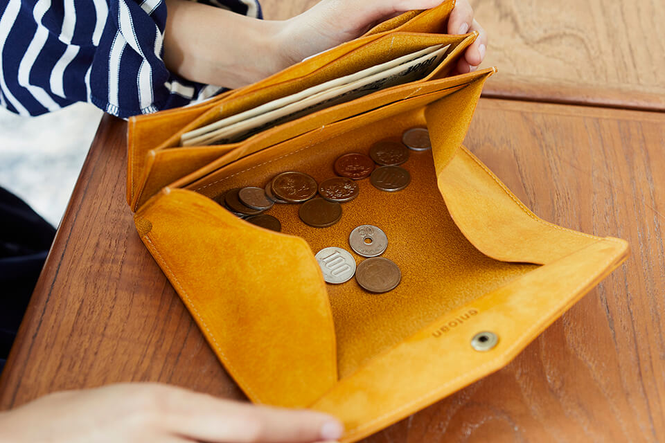 大きく開く小銭入れと、