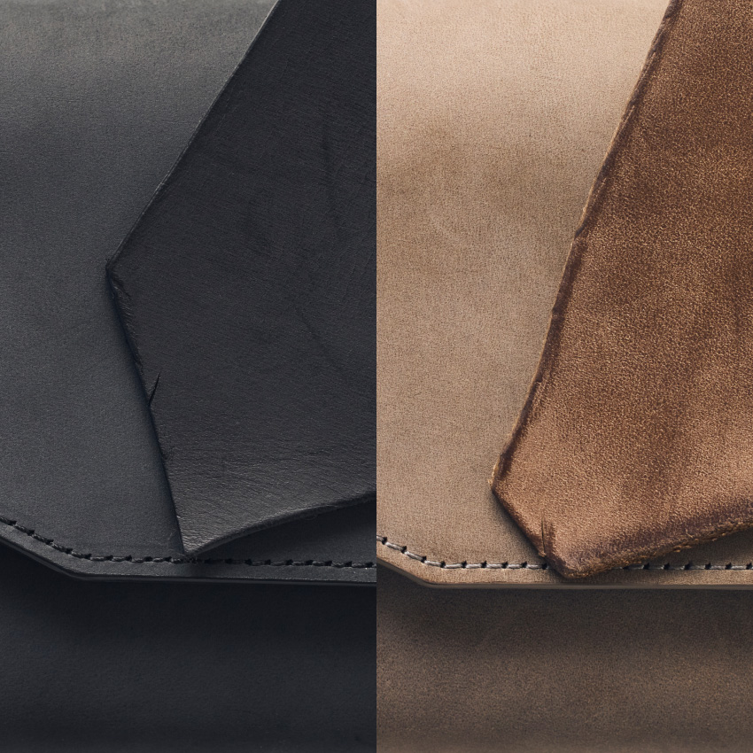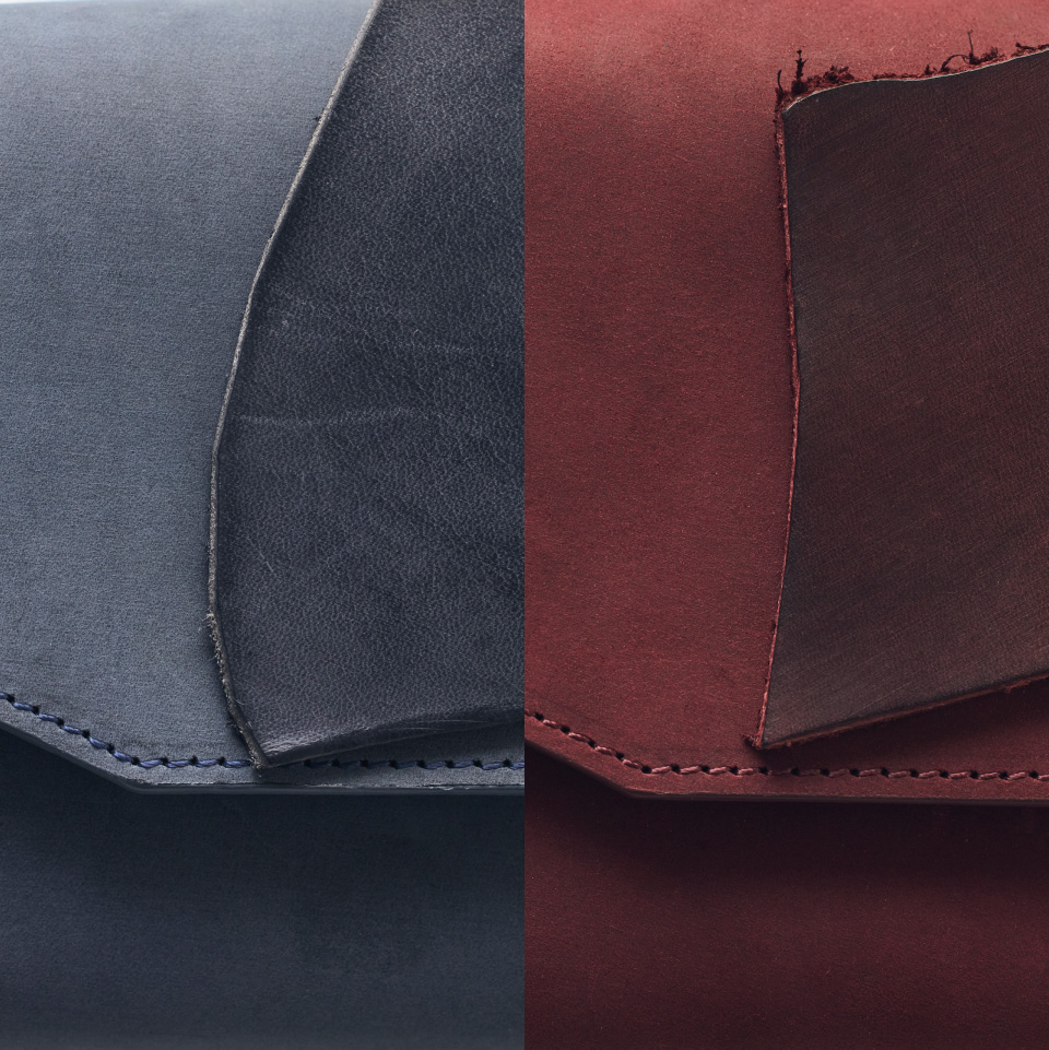 1.8mmと1.2mmの2枚の革を貼り合わせており、