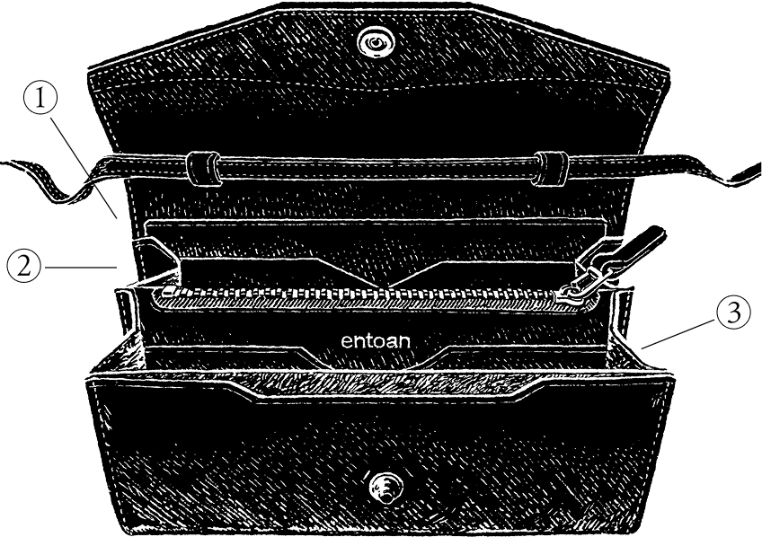 中がひと目で見渡せます。①お札を入れる場所、その1。