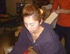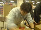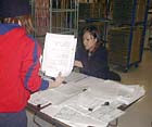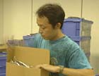 darling、どうにか役割を理解したもよう。 西田部長が指示した色、サイズを探し出し、 テーブルに運ぶ役のようです。 いったんわかると、もう他のみんなと 区別できないくらい動きが早い早い! さすがです。