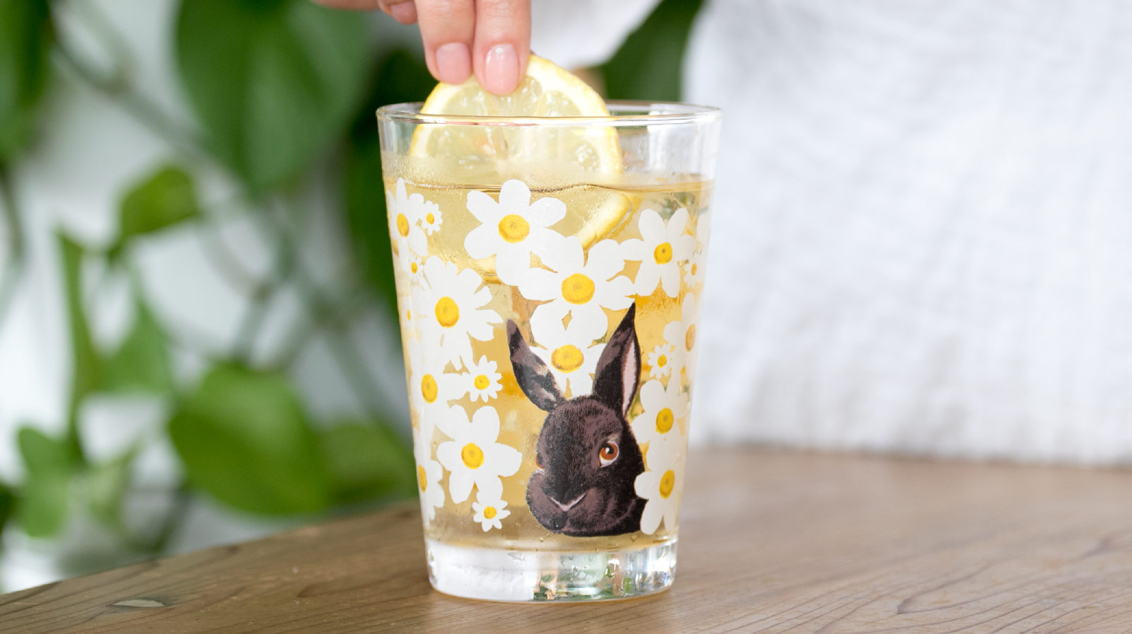 黒いうさぎと、白いお花がキレイなグラスです。