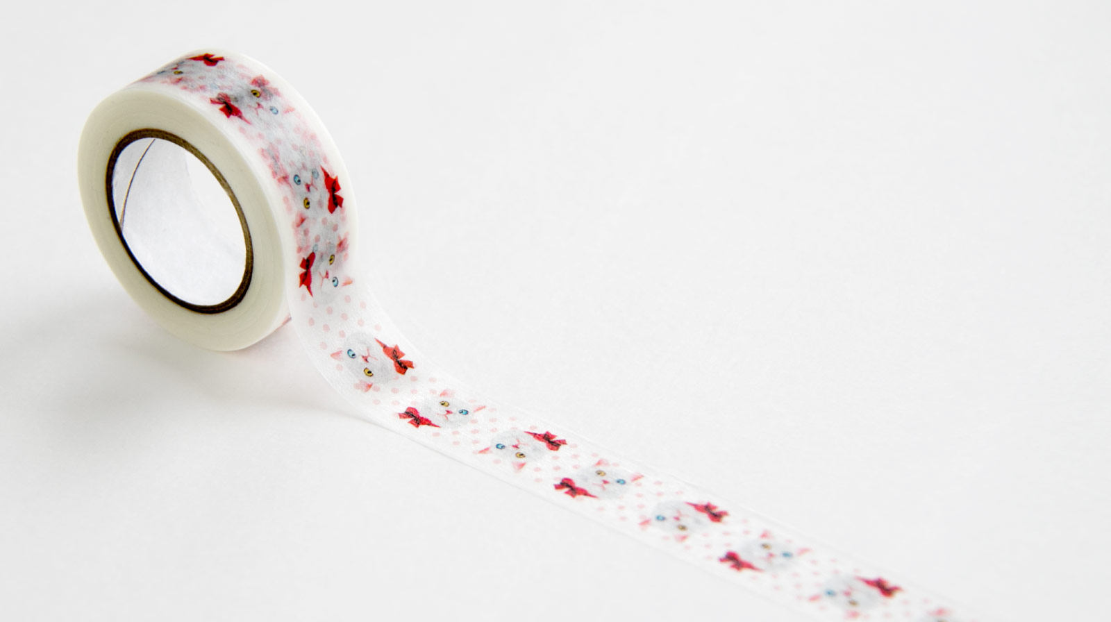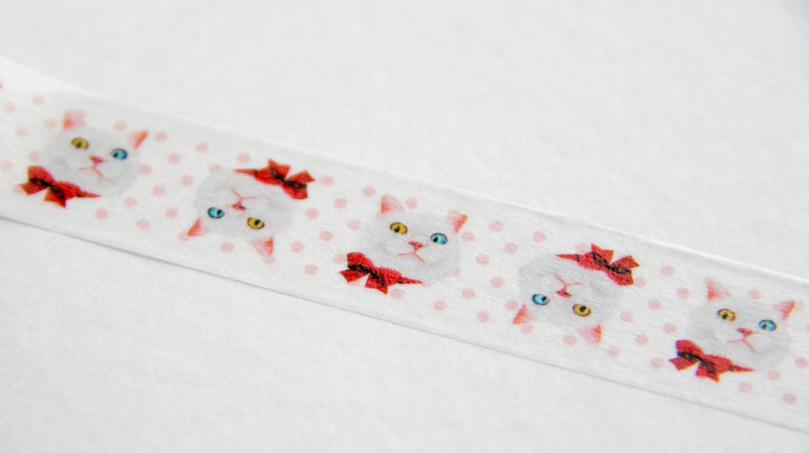 グラスと同じ柄の、マスキングテープです。 左右の目の色がちがうオッドアイの白猫さんと 目が合う模様です。