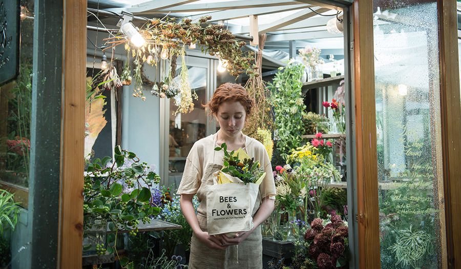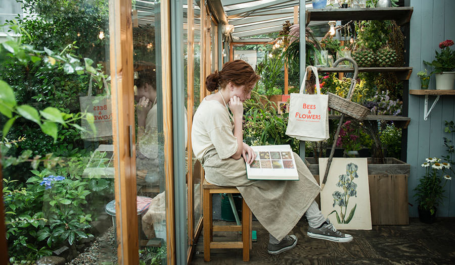 お花屋さんの看板娘は缶バッヂをつけたりして、