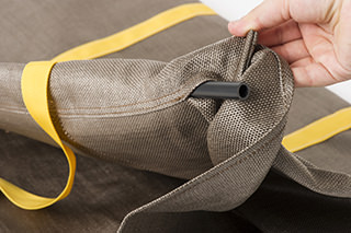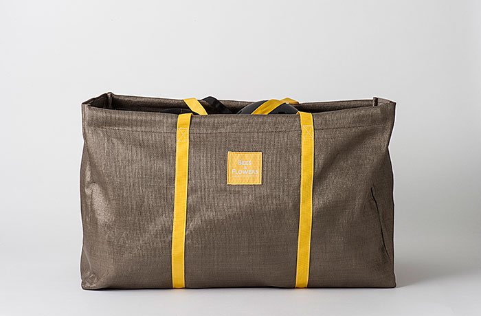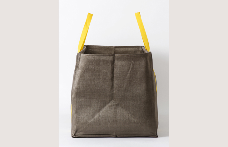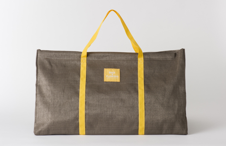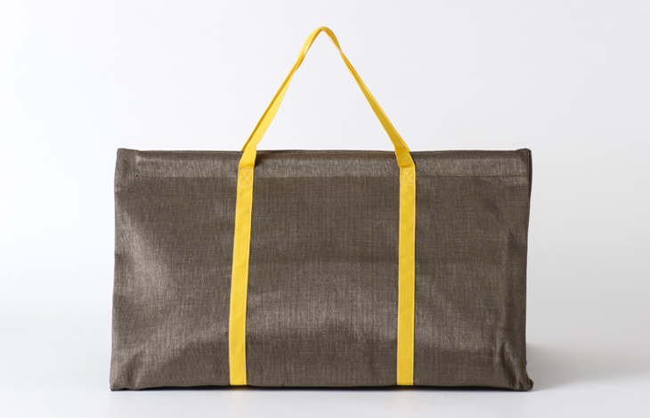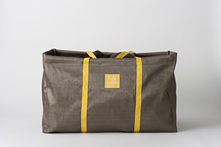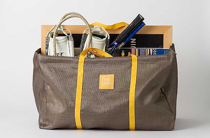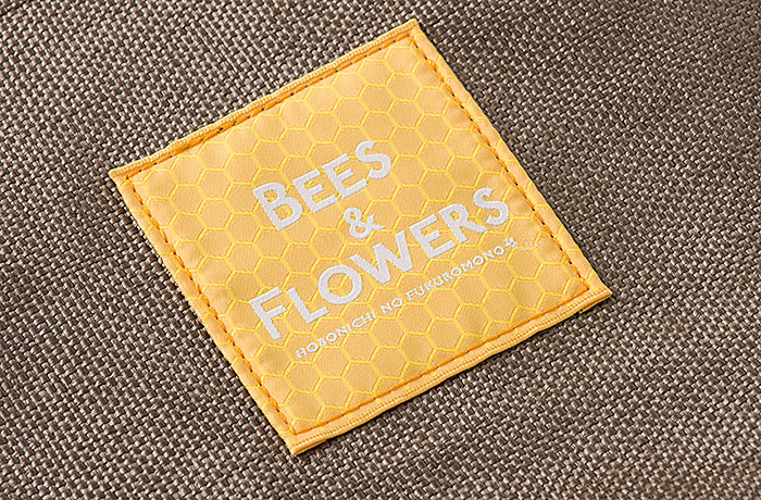 ハニカム模様の織りネームタグと持ち手は黄色。